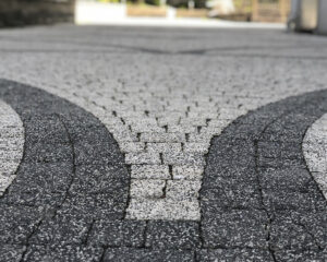 Lüks Küp Parke Taşı Uygulama Hizmeti – Estetik Dalga Desen (Bazalt & Açık Renk)