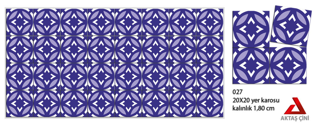 Desenli Karo ve Model Karo üretimi yapan , İstanbul kuruluşlu Aktaş Çini 1987 senesinde kurulduğundan bu güne ve gelecek yıllara tüketici dostlarımıza kaliteli desenli yer karoları üretmeye devam etmektedir. Sizlerin istekleri doğrultusunda renk, desen ve motif ne olursa hayır dememiş ve sizleri memnun etmek için kaliteden taviz vermeden ürünlerinizi teslim etmişizdir. Kalite ve termini her vakit ön planda tutmuşuzdur. Söz ve nitelik bu güne kadar ayakta durmamızı sağlamıştır. Özel istekleriniz desenleriniz ve motifleriniz çizilir. Tasarımlarınız ne olursa yollamanız yeterlidir.