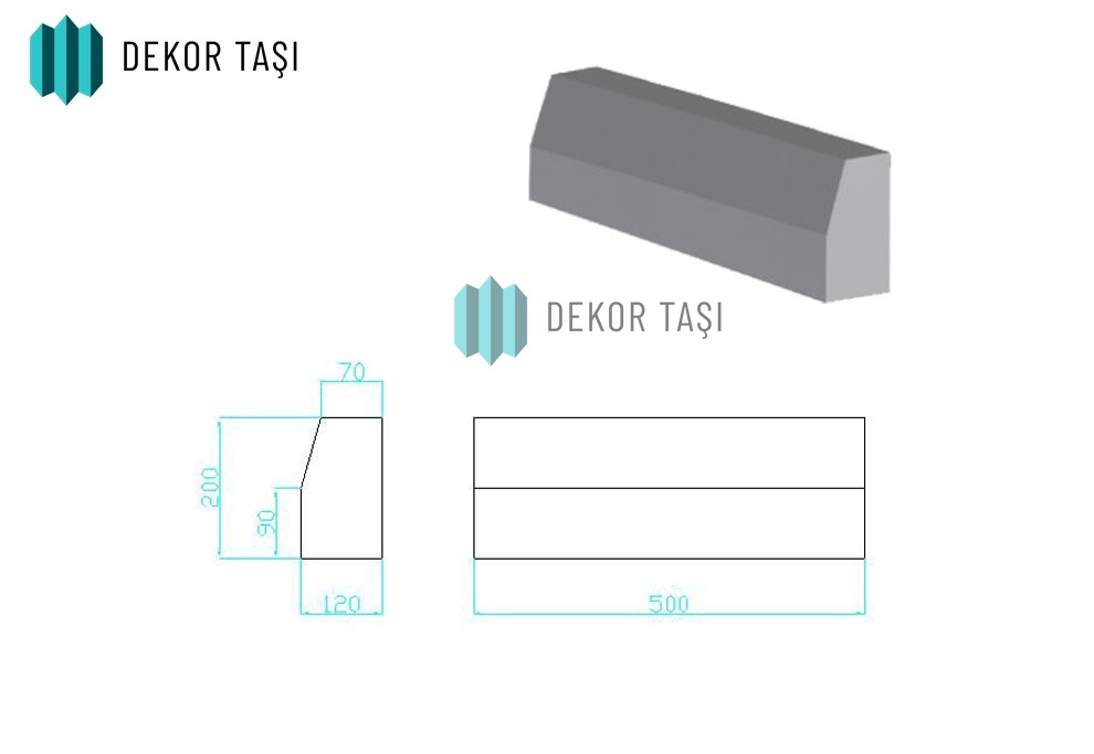 Dekor Taşı 50x21x7 cm Çift Taraflı Bordür Taşı