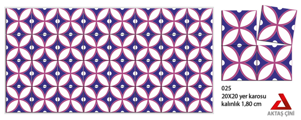 Desenli Karo ve Model Karo üretimi yapan , İstanbul kuruluşlu Aktaş Çini 1987 senesinde kurulduğundan bu güne ve gelecek yıllara tüketici dostlarımıza kaliteli desenli yer karoları üretmeye devam etmektedir. Sizlerin istekleri doğrultusunda renk, desen ve motif ne olursa hayır dememiş ve sizleri memnun etmek için kaliteden taviz vermeden ürünlerinizi teslim etmişizdir. Kalite ve termini her vakit ön planda tutmuşuzdur. Söz ve nitelik bu güne kadar ayakta durmamızı sağlamıştır. Özel istekleriniz desenleriniz ve motifleriniz çizilir. Tasarımlarınız ne olursa yollamanız yeterlidir.