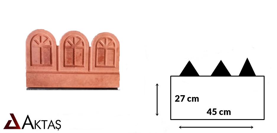 - “Motifli parapet, çim kenarları için dekoratif bordür. 45×27 cm, dayanıklı beton malzeme. Adet bazında satış.”