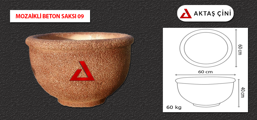Mozaikli Beton Saksı 60x60x40 60 kg