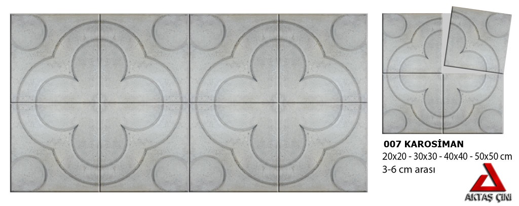 Ürün oksit boya ve pç 42,5 çimento karışımı ile plastik kalıplarda üretilmektedir.