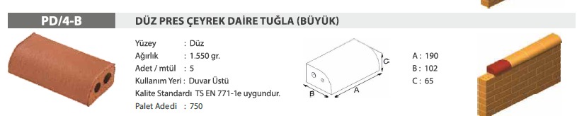 PD/4-B Düz pres çeyrek daire tuğla (büyük)