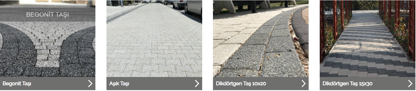 Şehir mimarisi ve özel peyzaj projeleri için yüksek dayanımlı, dekoratif beton parke taşları. Aşık taşı, begonit, küp ve plak taş seçenekleriyle uzun ömürlü çözümler.