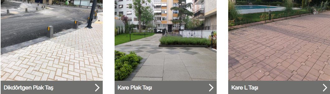 | Uygulama Alanları | Kaldırımlar, Şehir Yolları, Özel Peyzaj Alanları, Parklar, Teraslar, Cadde ve Sokaklar |