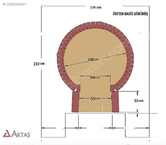 - Fırının dış ölçüleri, iç çaptan daha büyük olacaktır çünkü iç kubbenin etrafına kalın bir yalıtım katmanı ve dış kaplama (sıva, taş, tuğla) eklenir.