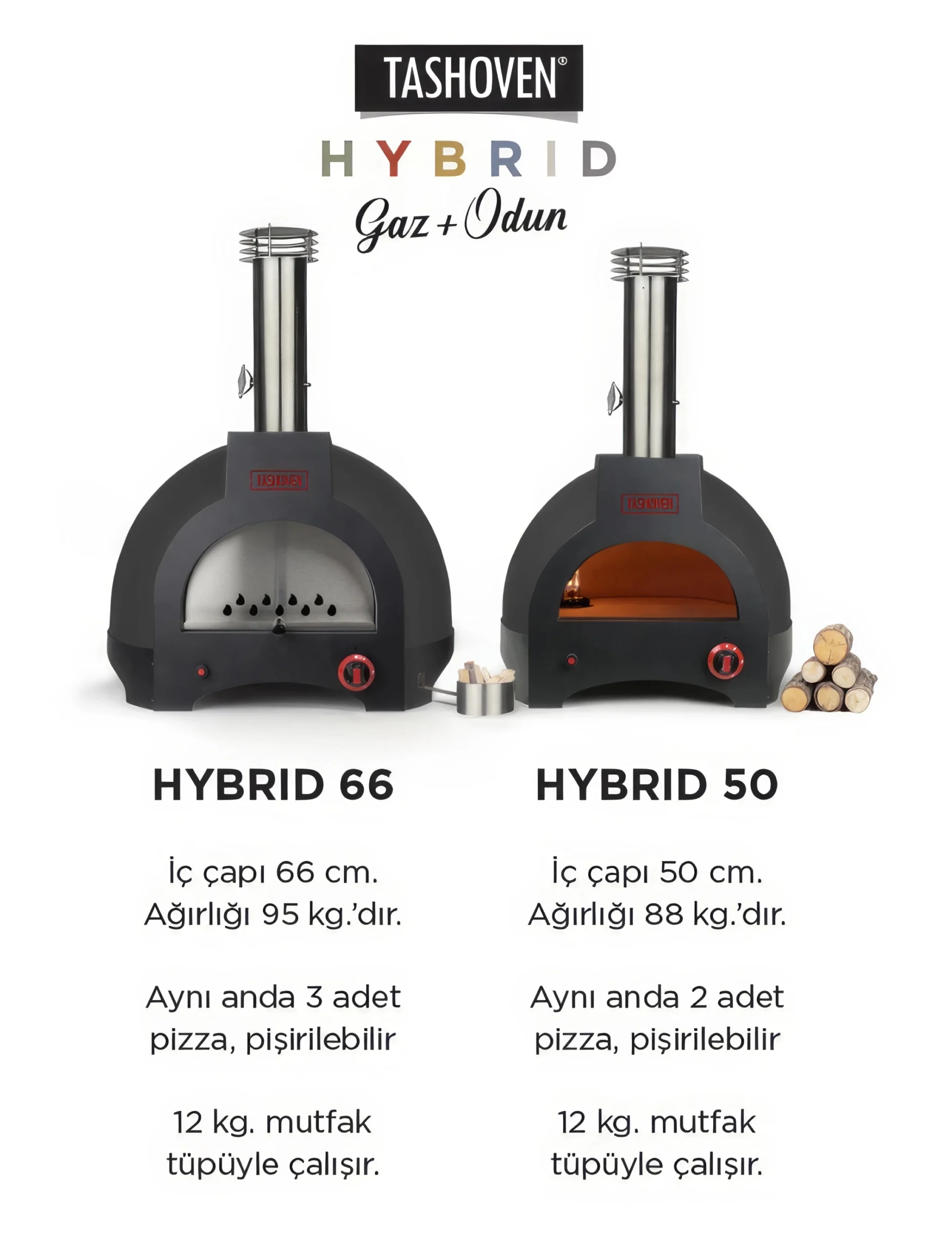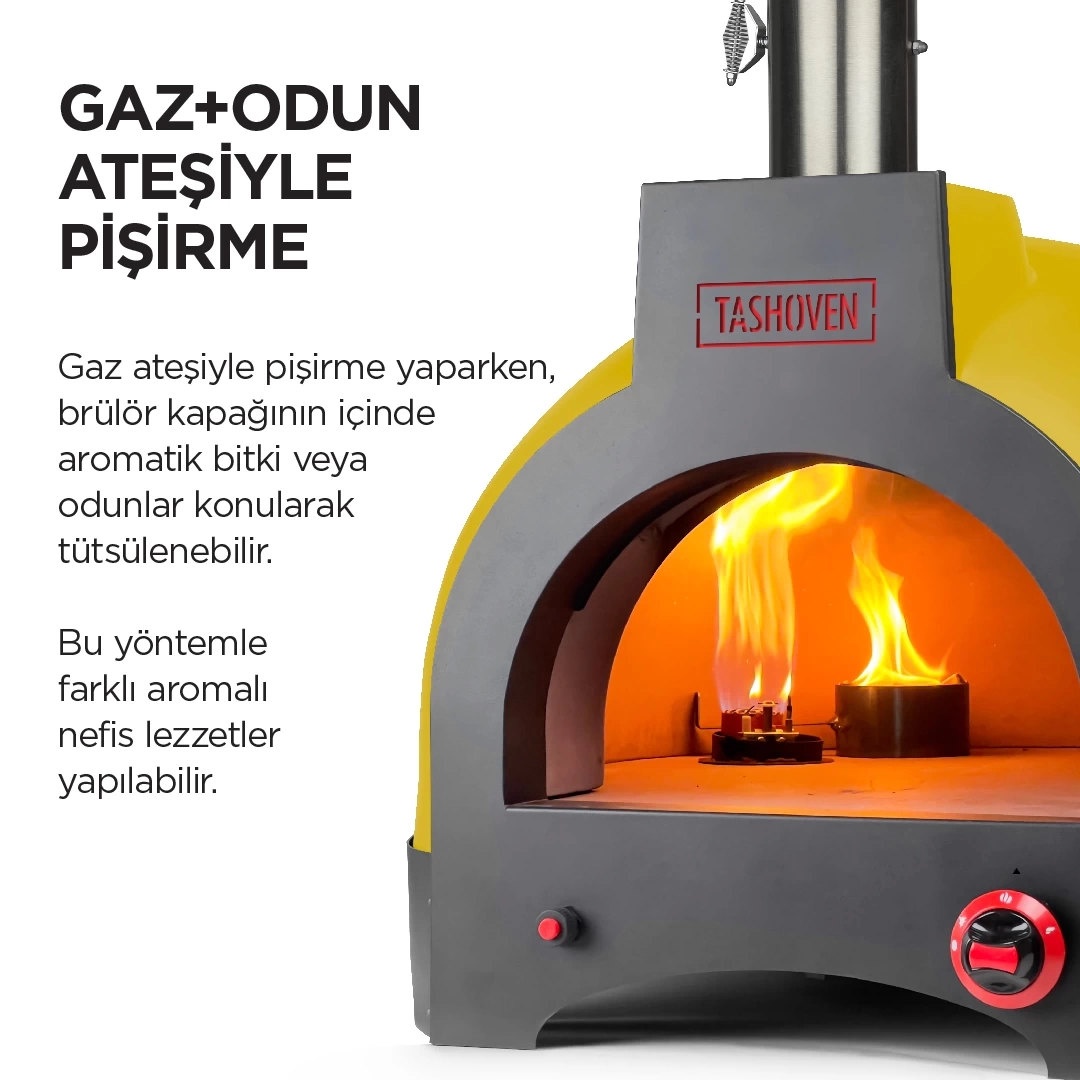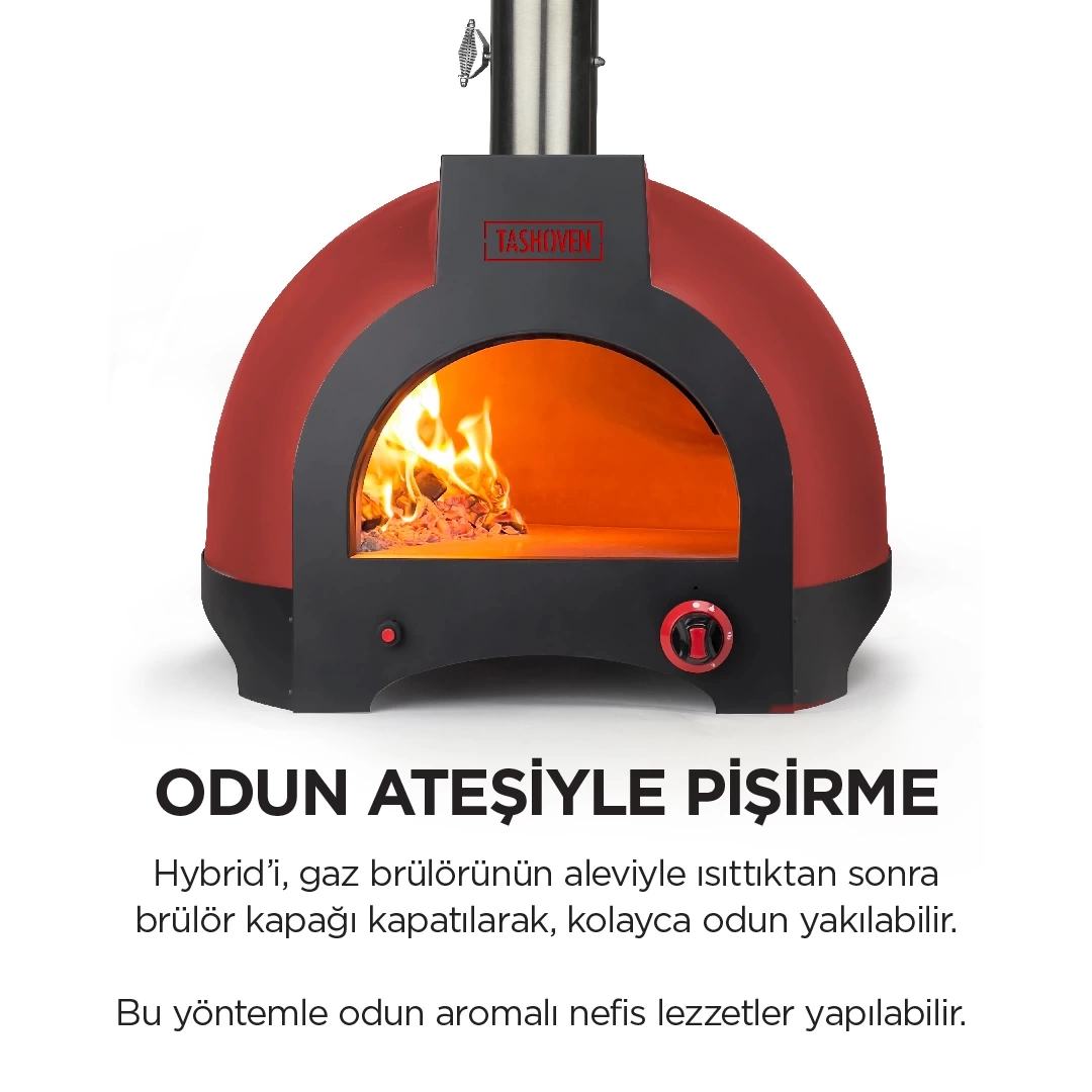 Hem gaz hem de odun ateşiyle pişirme imkanı sunan Tashoven Hybrid 66, taş fırın lezzetlerini evinizin konforunda deneyimlemenizi sağlar. 66 cm iç çapı ile 3 orta boy pizza pişirebilme kapasitesine sahiptir. 30-45 dakikada ısınabilen fırın, en az 4 saat ısı tutabilir.