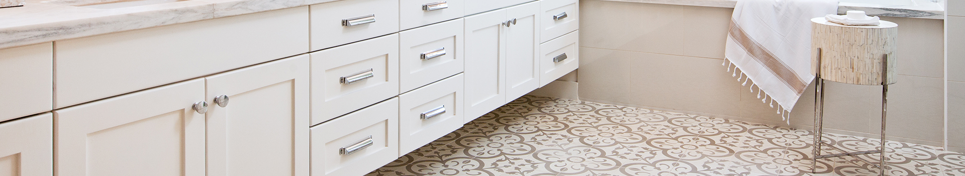 Karosiman terrazzo karo ile döşenmiş şık bir banyo