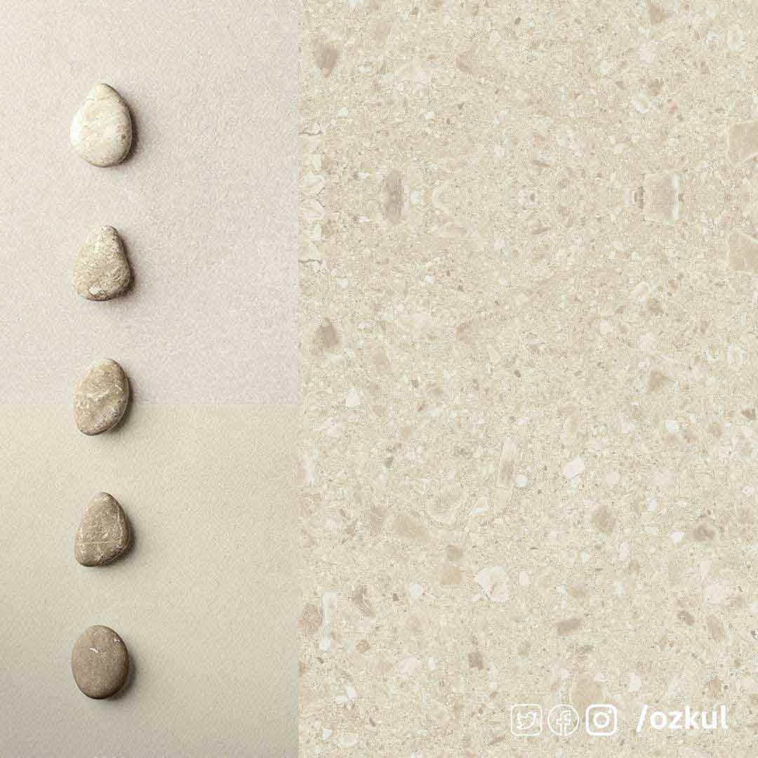 • Doğal ve Şık Görünüm: Doğal taş parçacıklarının oluşturduğu benzersiz desenler, her bir karoyu özel kılar.