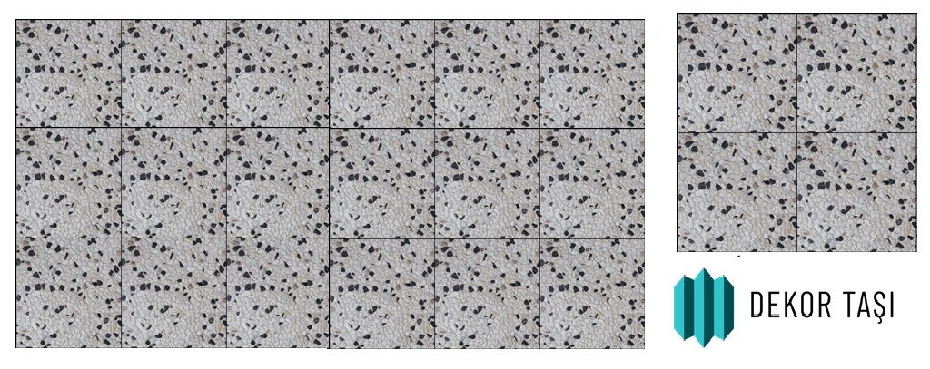 Vampirella modeli wash beton karo yoğun luk olarak beyaz tamburlu dolomit ve az siyah dolomit karışımı ile imalat edilmektedir , kare biçim dedir.