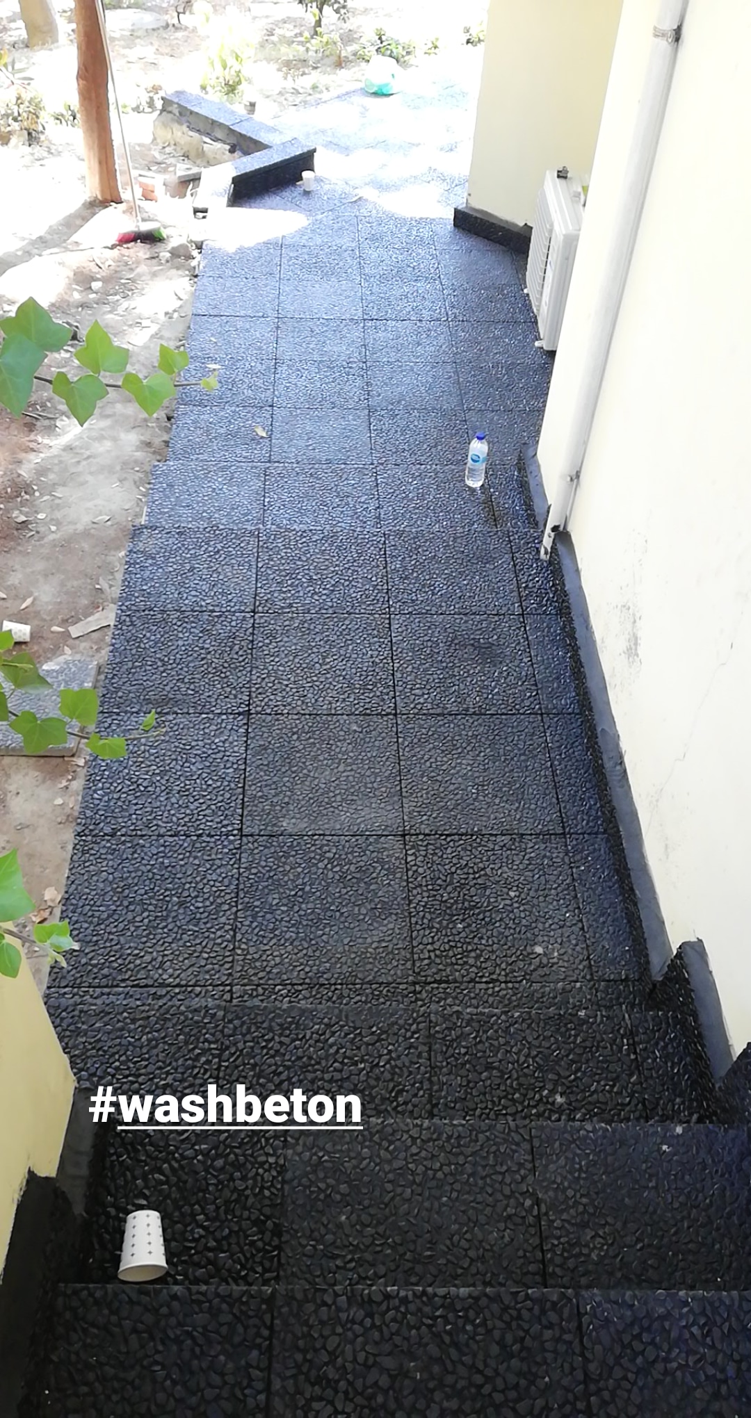 Siyah bazalt agrega ile yapılmış ve cilalı wash beton ürünü dür.